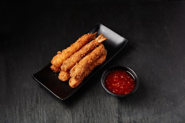 61.Goong thot (dybtstegte tiger rejer) 6 stk.dybstegte tiger rejer med sweet-sour chilisauce. Husk at ris skal bestilles separat. Pris kr. 104,00 Læg i kurven