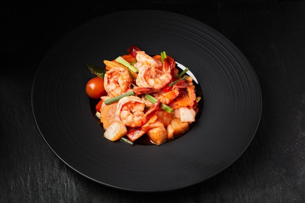 62.Phat priew-wan goong(tiger rejer i sweet & sour9 Tigerrejer i Sweet-sour sauce. Husk at ris skal bestilles separat. Pris kr. 119,00 Læg i kurven
