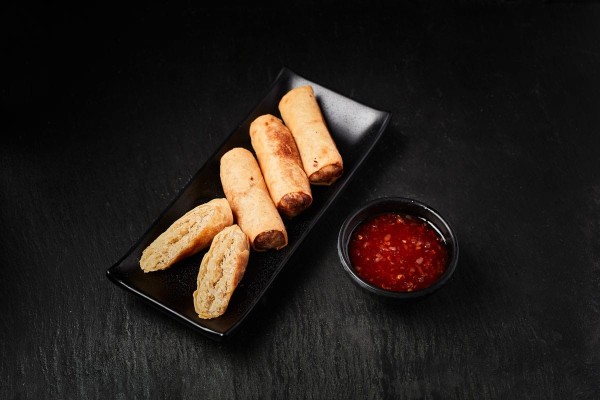 3. Po pia pak (veg. mini springrolls) 4 vegetarian springrolls. glassnoodles. peas,carrot, edamame beans, tofu. Sweet & sour chilisauce. Price kr65.00 Add to cart