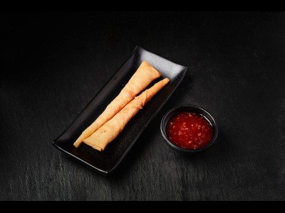 2 pcs deep fried tiger prawn in springroll pastry seasoned with salt,pepper and garlic. Sweet-sour chilisauce.